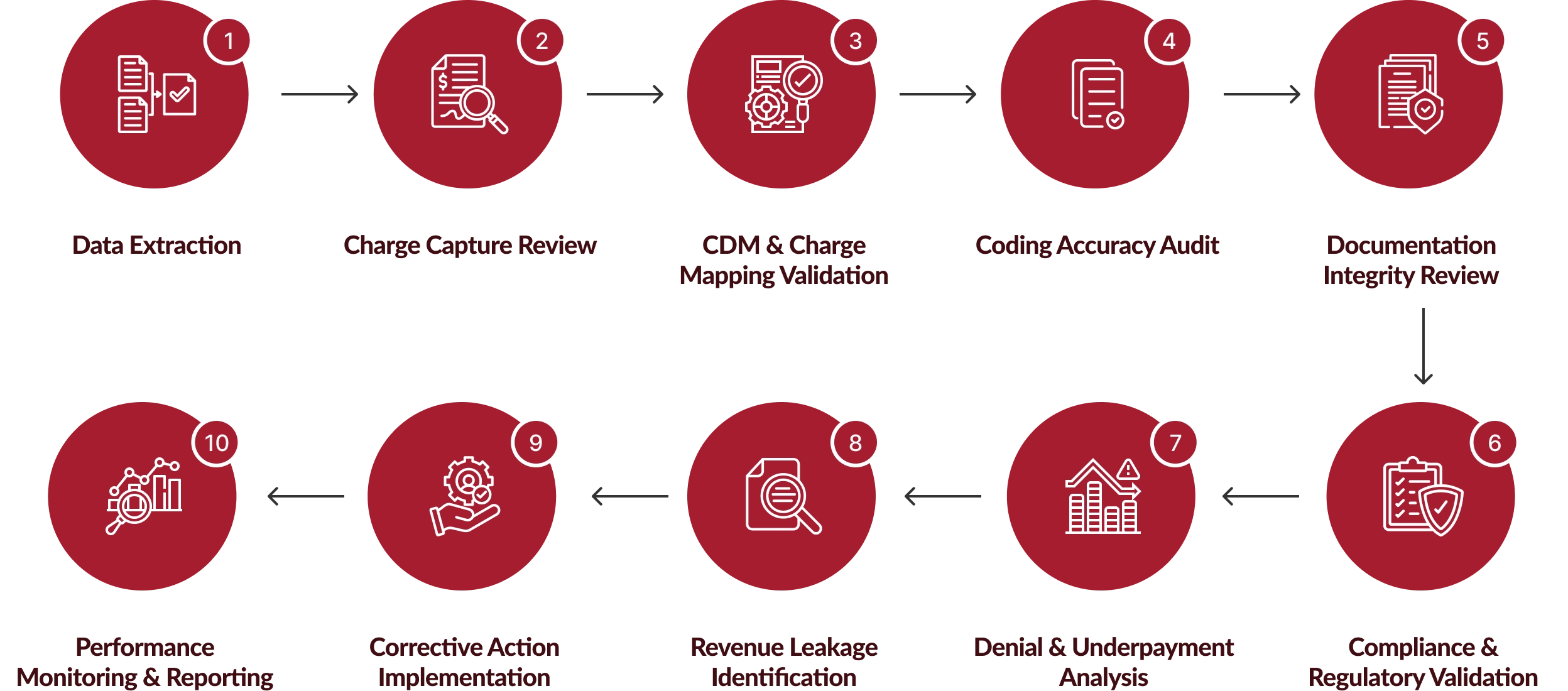 Our revenue integrity services deliver financial accuracy, compliance protection, and operational transparency across the healthcare revenue cycle.